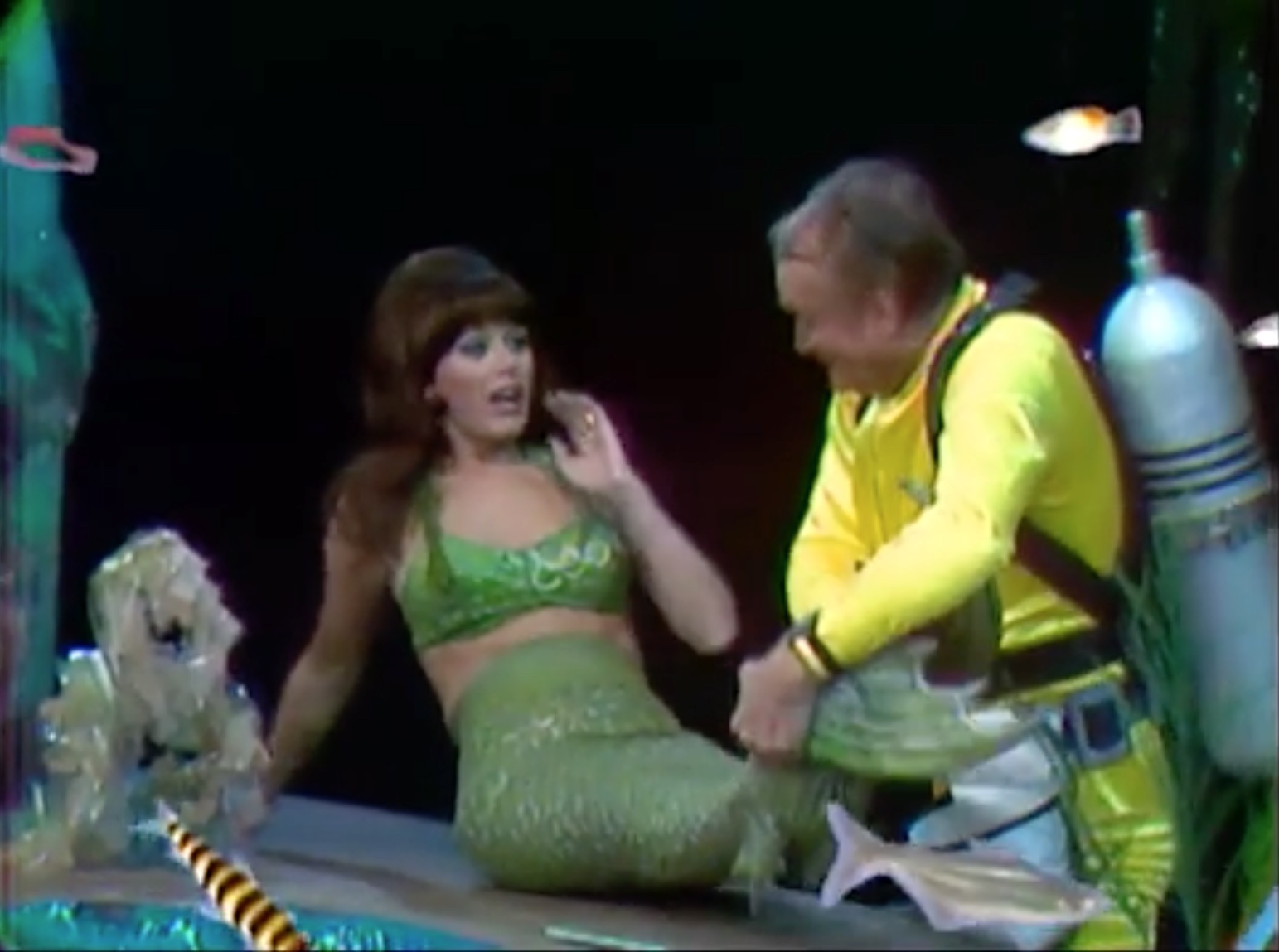 Undersea mermaid Michelle Lee is caught by scuba diver Red in “A New York Stripper is not Always a Steak“