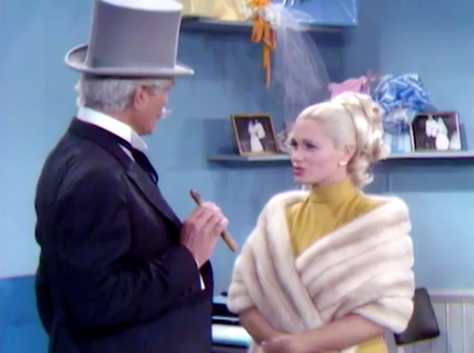 George Appleby models one of his company’s mini-skirts. His wife Clara is not amused in “Better Dead than Wed“