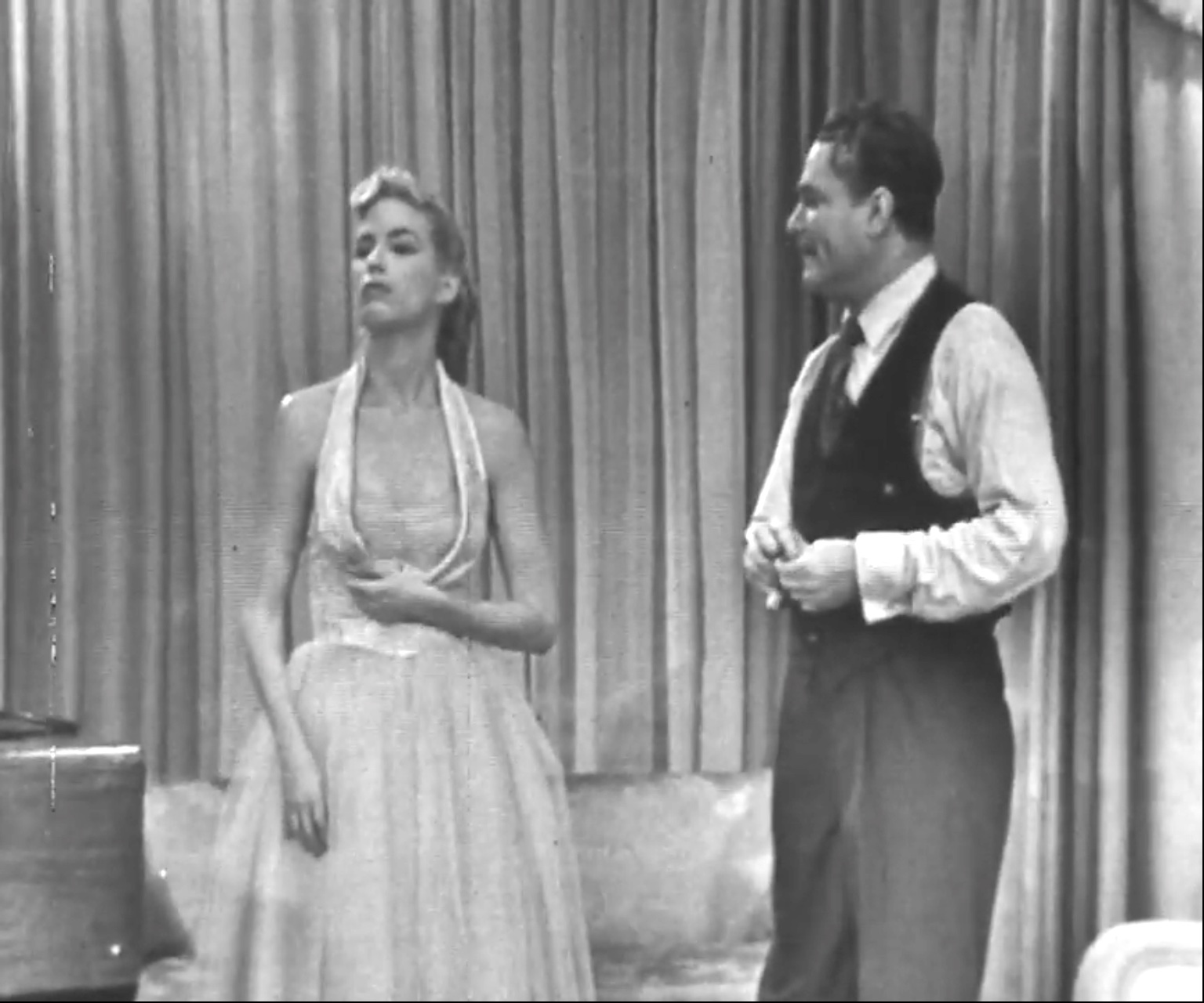 Mrs. Cavendish (Janis Paige) and butler (Gilchrist Stuart) in “Ten Baby Fingers and Twelve Baby Toes“