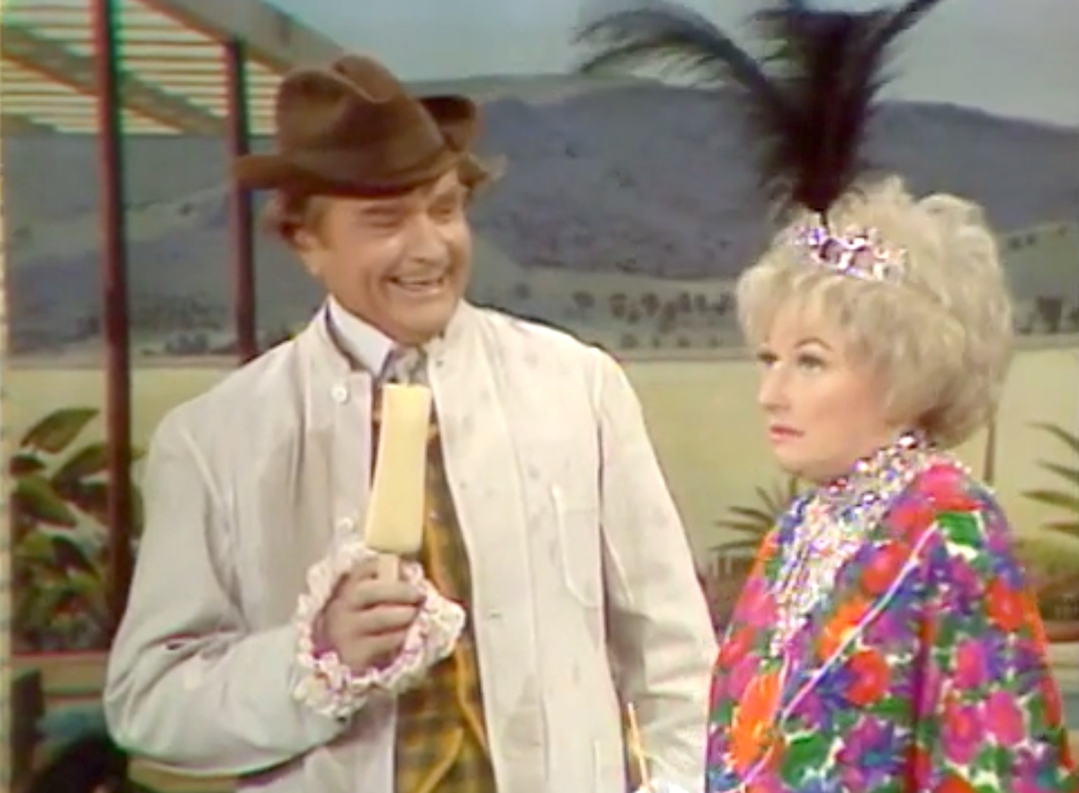 Clem Kadiddlehopper and Greta Gargoyle (Phyllis Diller) in “Dial M for Moron“