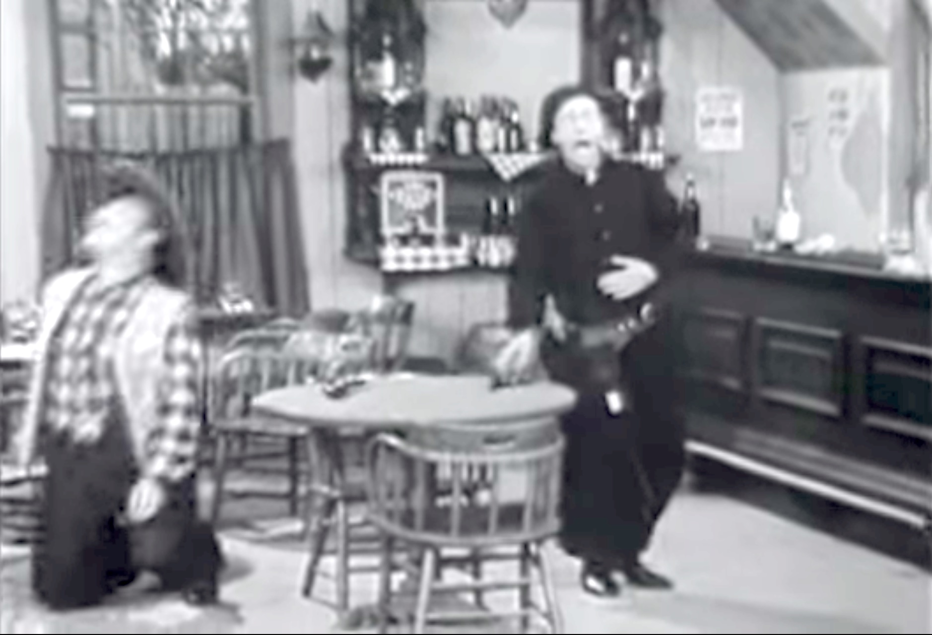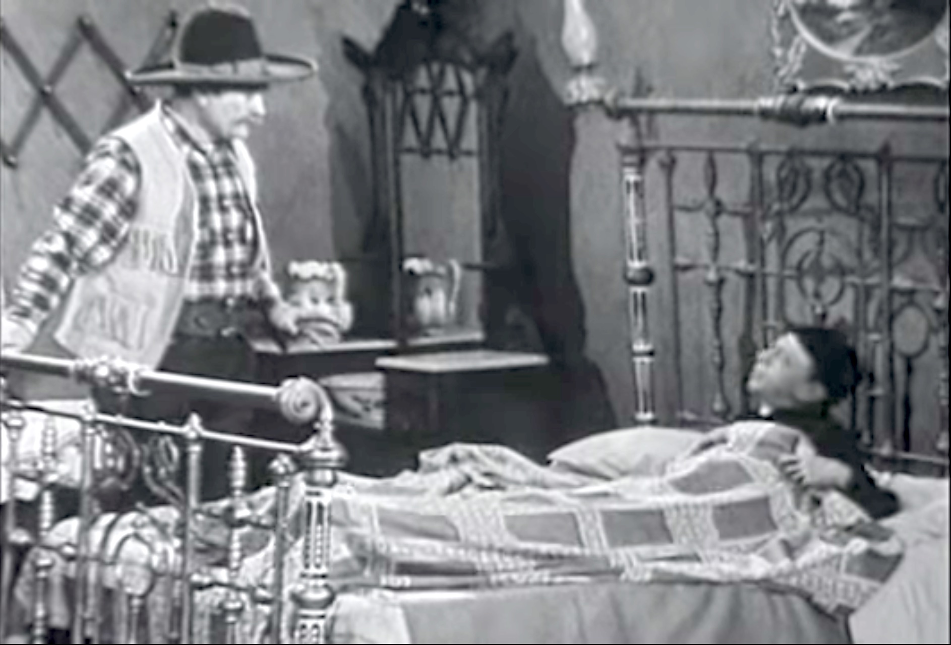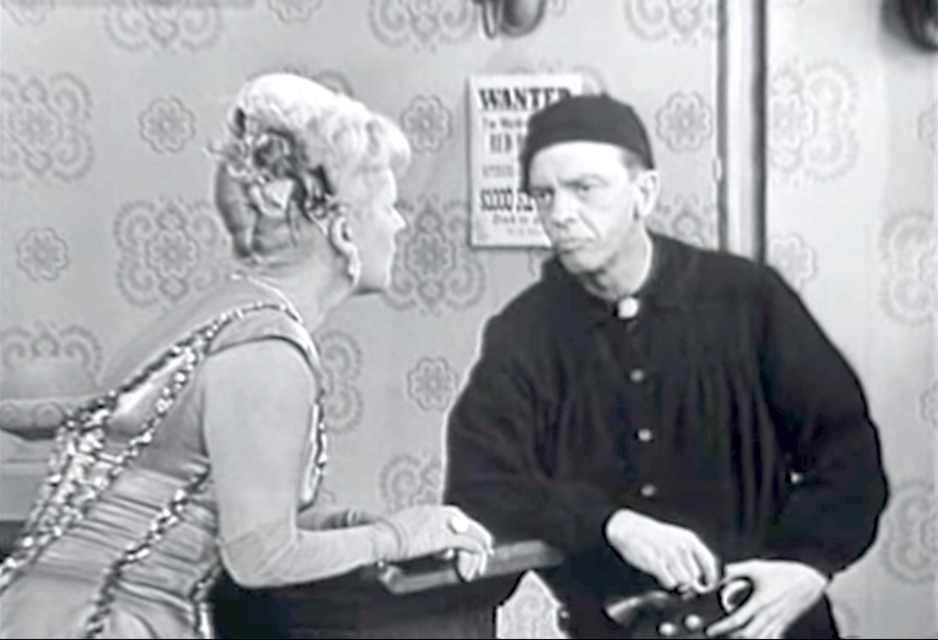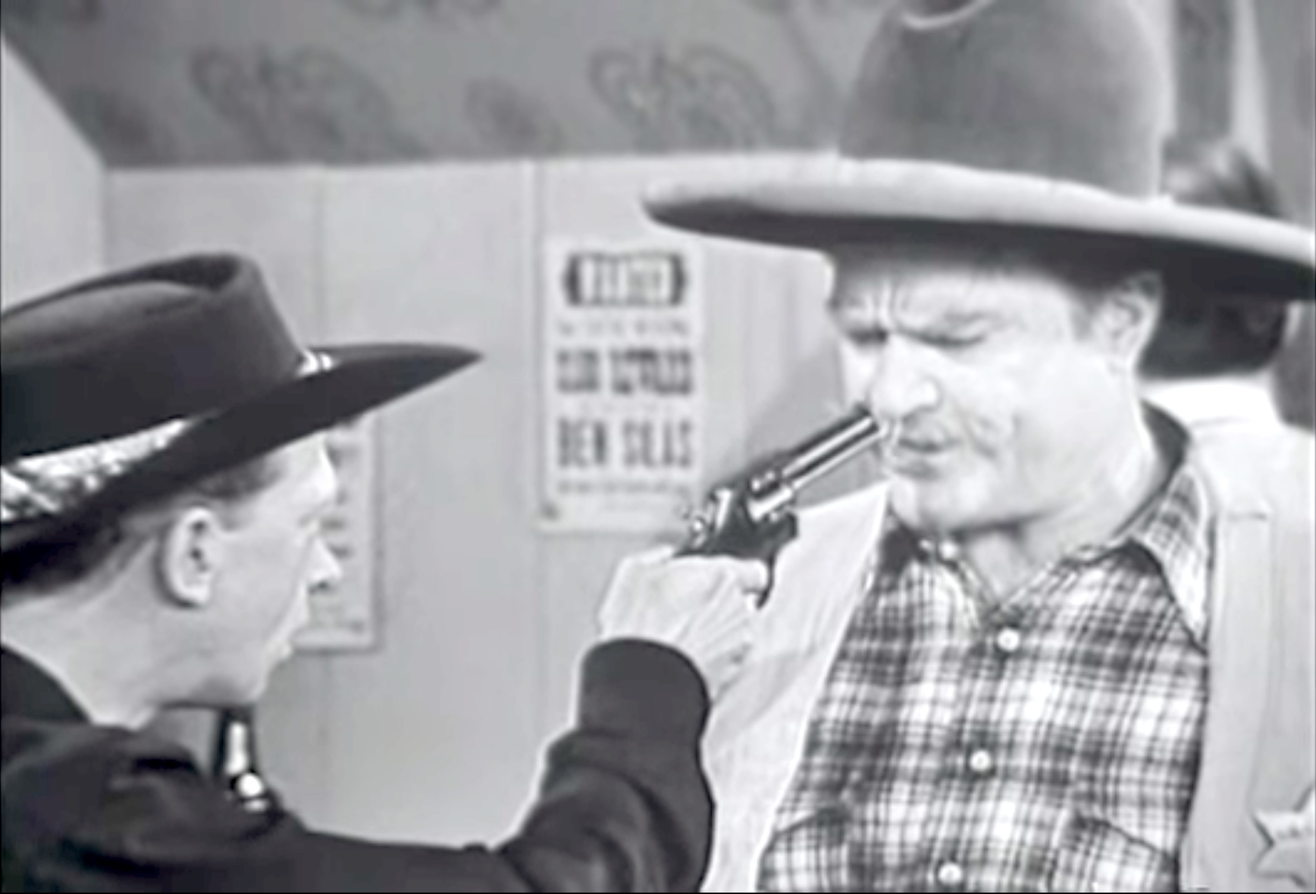 Kate, you’re next – Deadeye collecting money for “the bandits”Don Knotts as Mr. Pallid in San FranciscoMr. Pallid’s card – Have Cough, Must TravelFooling the Indians?Mr. Pallid enters the saloon“I’m going to enjoy working with you, Sheriff” Deadeye and the bartender looks on as Mr. Pallid mistakes Kate for the Sheriff — and kisses her!Sheriff Deadeye and Mr. PallidI nose itYou in there, Pallid?Tell me a bedtime story? Deadeye and PallidFastest snorer in the WestRobbed while asleep!Any idea who robbed you? It wasn’t termites!Trying to pry Pallid’s ring off a dummy handCrooked Sheriff Deadeye is exposedDeadeye, you’re under arrest!We missed! or not … the end of “Deadeye and the Gunslinger”After the shootoutIn Deadeye and the Gunslinger, A hired gun is needed to stop holdups in a saloon. Don Knotts stars as Mr. Pallid, in a parody of Have Gun, Will Travel