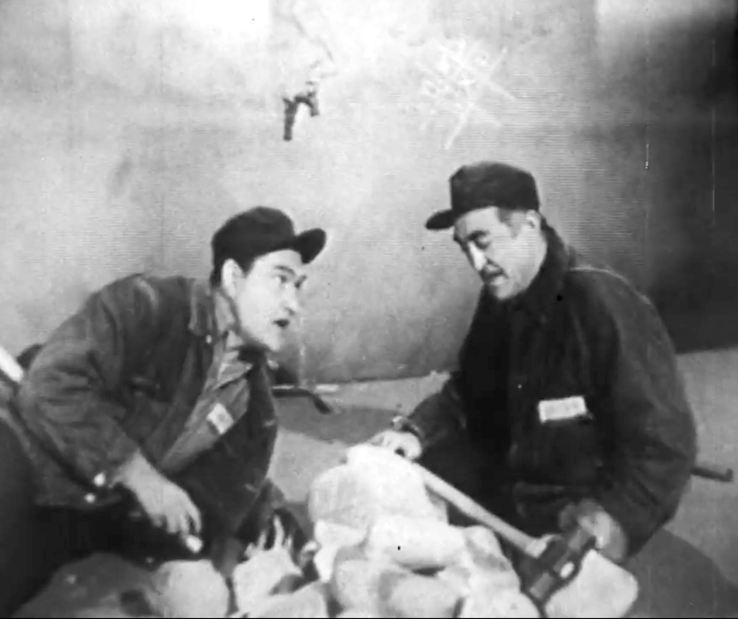 The Skelton Film Scrapbook features Red as a prison inmate, who, along with another inmate, breaks rocks from a rock pile. The skit eventually changes into a Tide commercial. “Whatcha in for?” “I threw my wife’s mink coat outta the 15th story window.” “They can’t put you in her for throwin’ yer wife’s mink coat out a window!” “Me old lady was in the mink coat.” “How long’d they give ya?” “500 years.” “At least they didn’t give you life.”