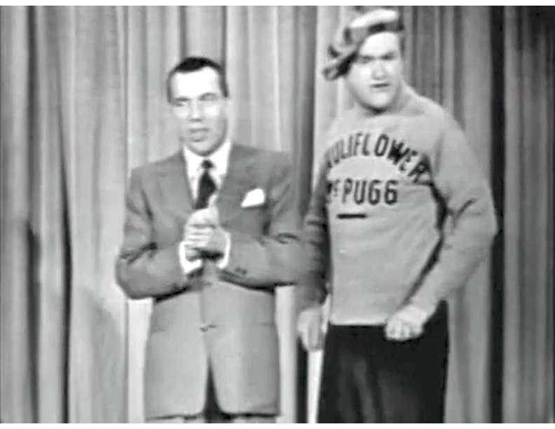 Red Skelton’s friend Ed Sullivan comes on stage, imitating his Toast of the Town show, and calling out various celebrities in the audience. Including Cauliflower McPugg! After some clowning around between them, it switches to the Old West, where Deadeye is at the Golden Nugget saloon.