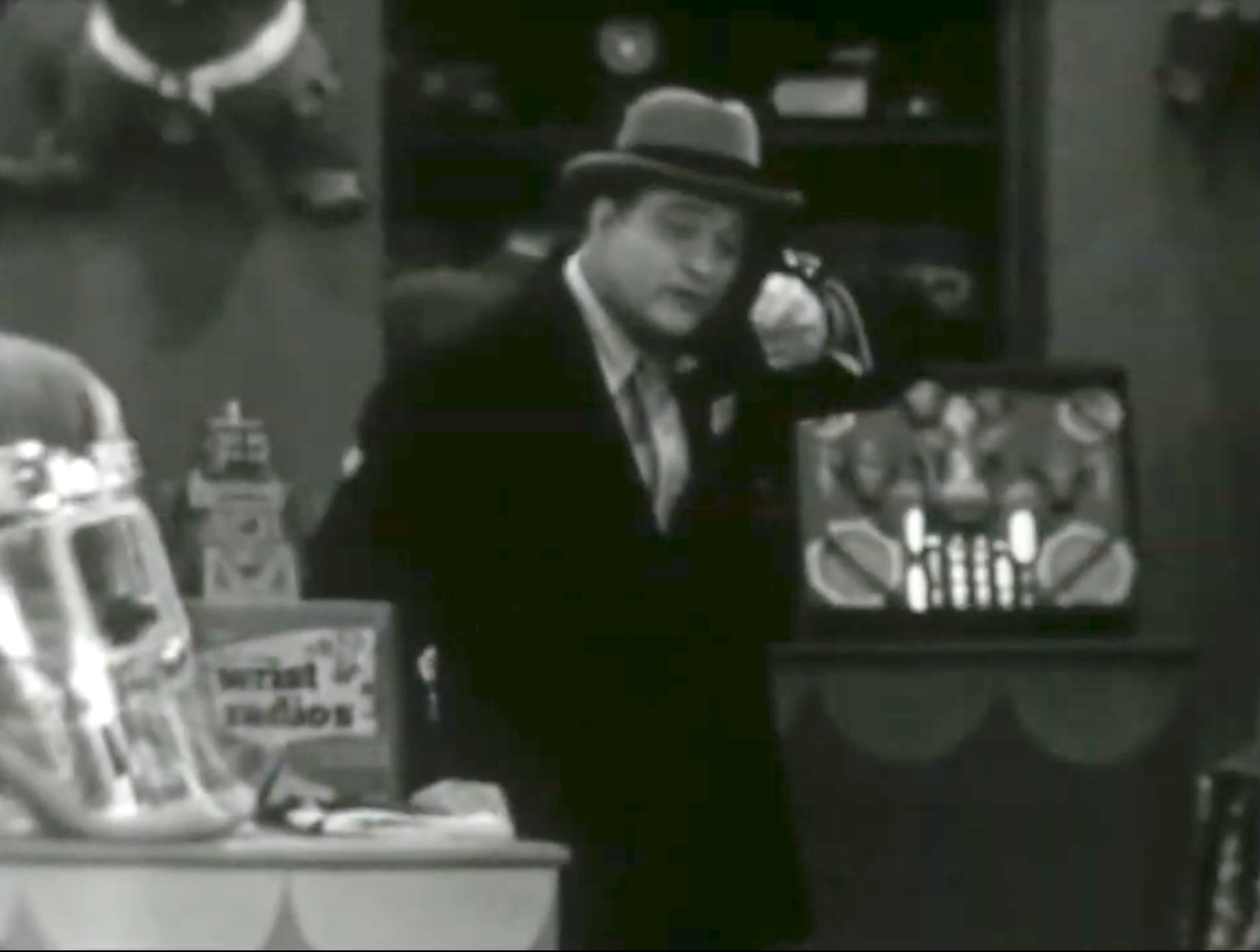 Red Skelton is playing a variation on himself, shopping for Christmas presents for his children at a department store. Where he acts like an overgrown child himself. In the Christmas spirit, of course. Then, using the wrist radio that the saleslady gave him to test, he overhears a young boy asking Santa for — Kit Carson! For the play that he and his friends are putting on for underprivileged children. And big-hearted Red tells Santa to promise the young man that he’ll have Kit Carson — and Red Skelton as well! Does he have to take them both? Yes!