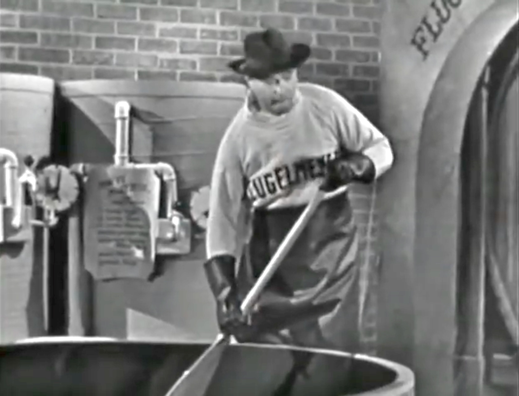 Clem Kadiddlehopper is the brewmeister for Flugelmeyer’s Beer, keeping the formula for the brew secret from Fraulein Helga (Ann) and her three spies.