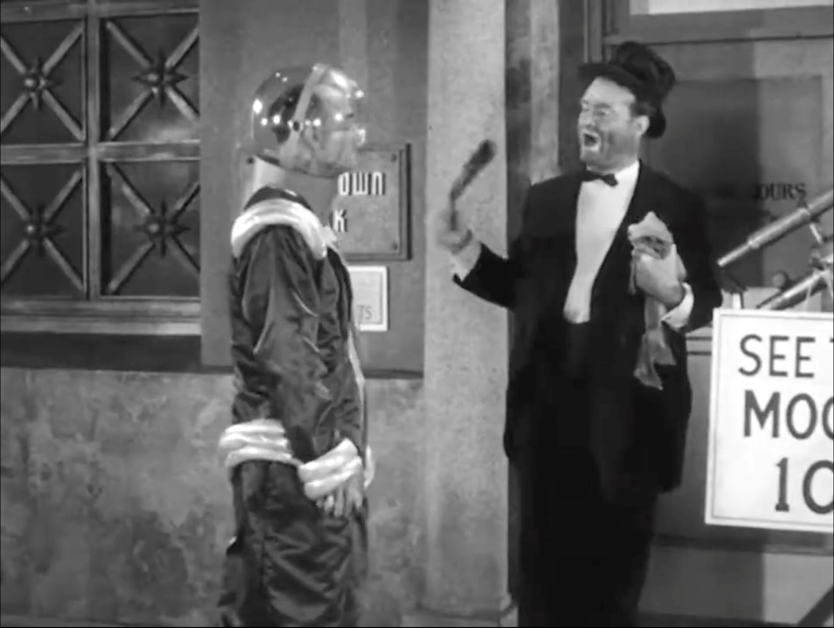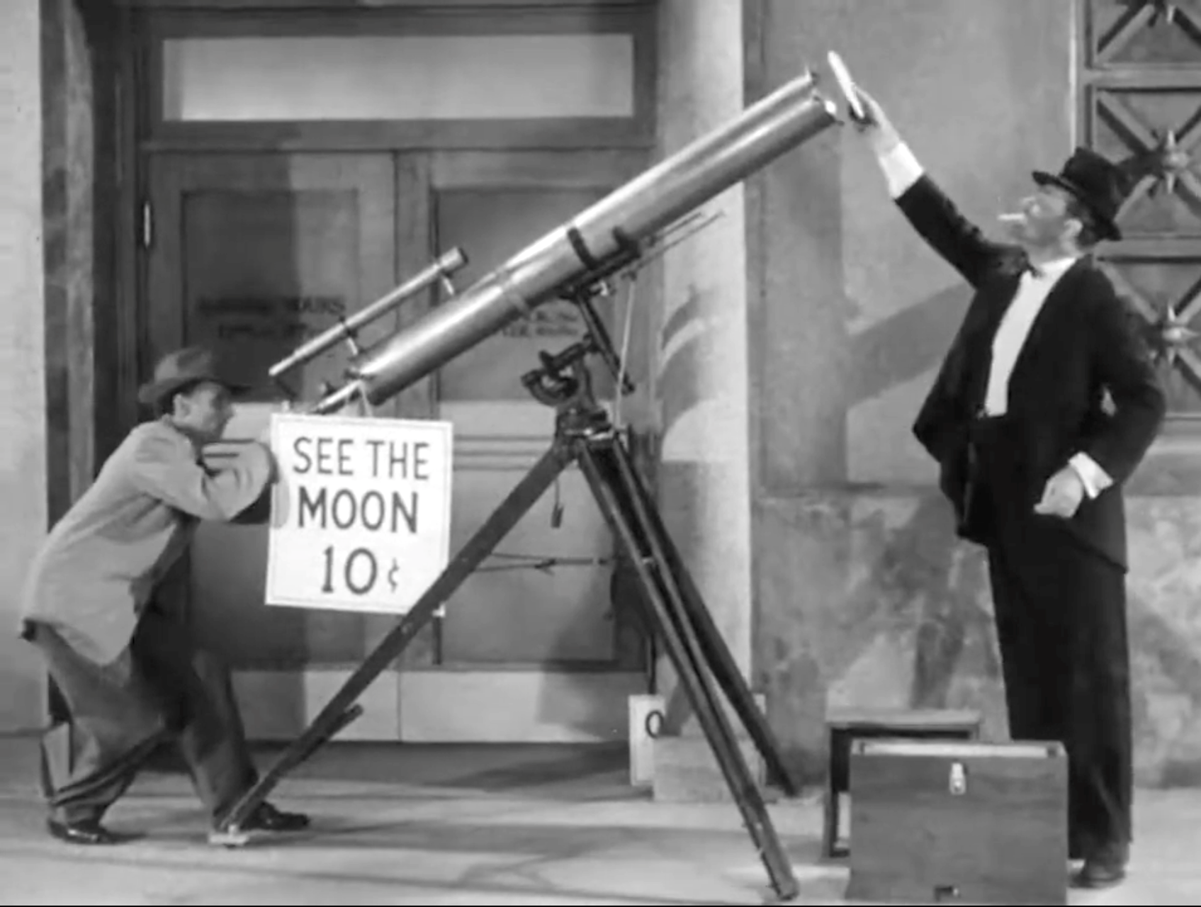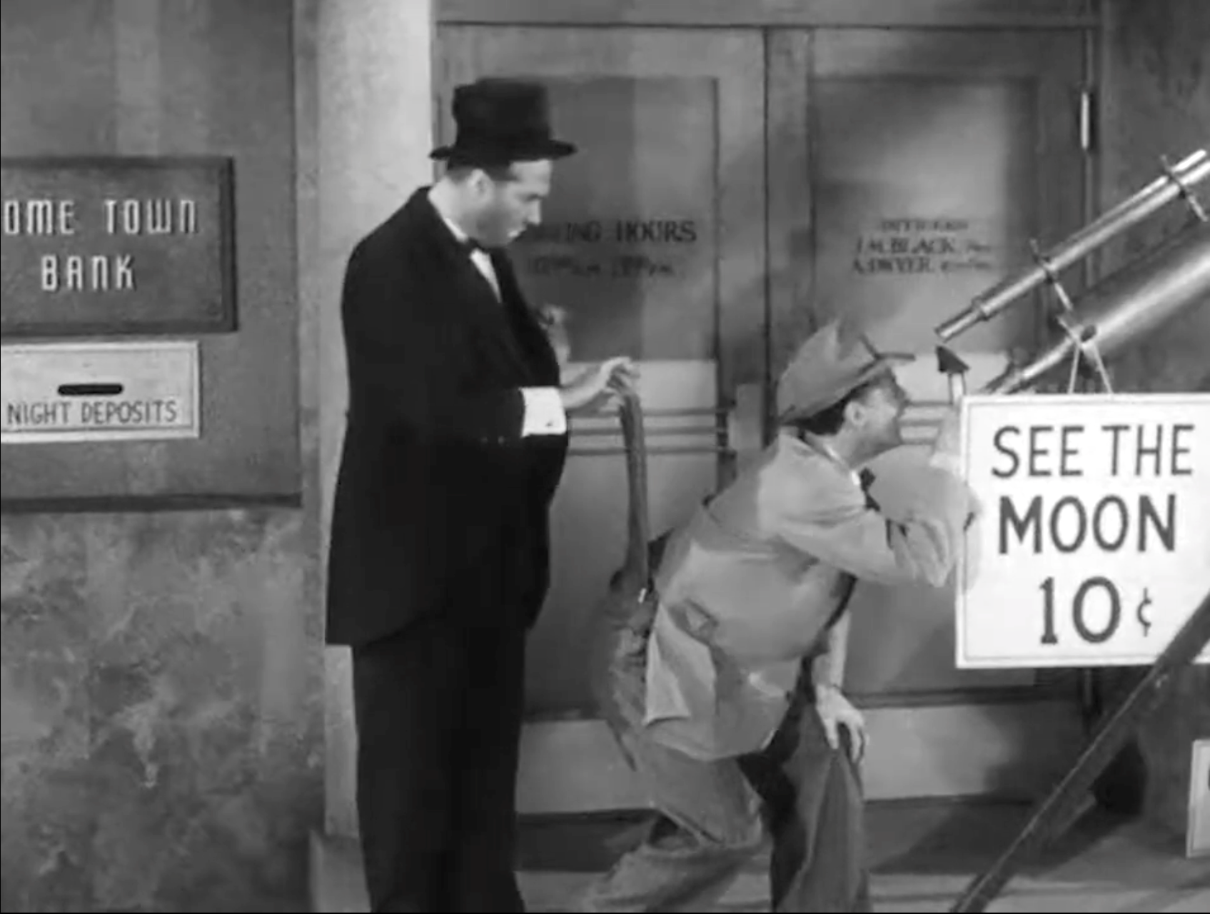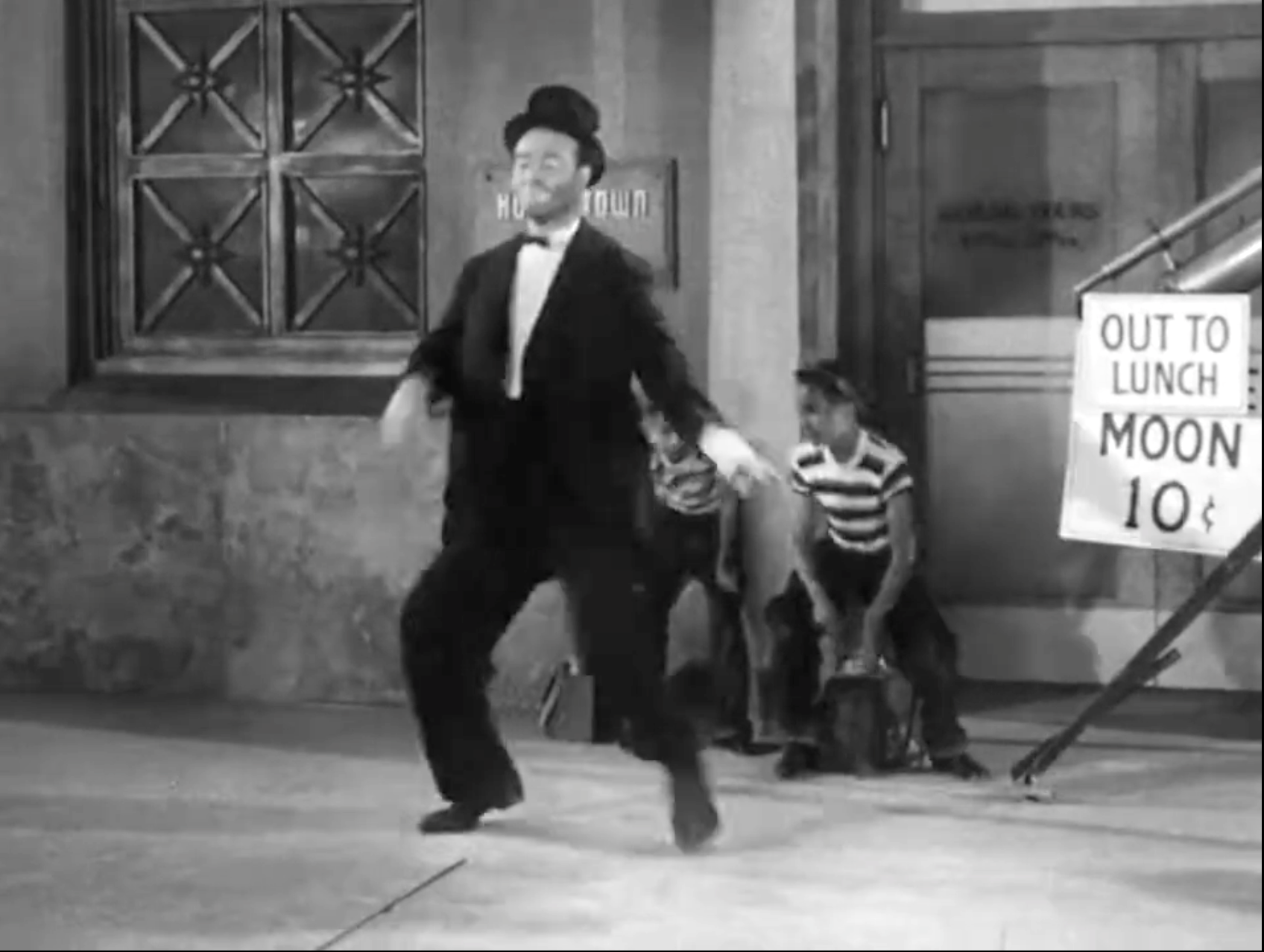 It begins with a dance number by the Moultrie Brothers, portraying shoeshine boys, and doing an excellent, energetic dance. They’re eventually joined by Freddie the Freeloader, who does a very good dance routine himself. Freddie has “borrowed” a telescope from the observatory and is selling a gaze at the moon for ten cents. While his customers are staring through the telescope, Freddie steals their wallets. But one of the victims catches Freddie because he turns out to be Fingers Malone, the President of Pickpockets, Inc! As usual, a Tide commercial is integrated into the sketch. And Freddie and Fingers have a pickpocketing competition. Fingers takes Freddie’s suspenders! And after he’s gone, Freddie demonstrates that he’s stolen Fingers’ woolen underwear!