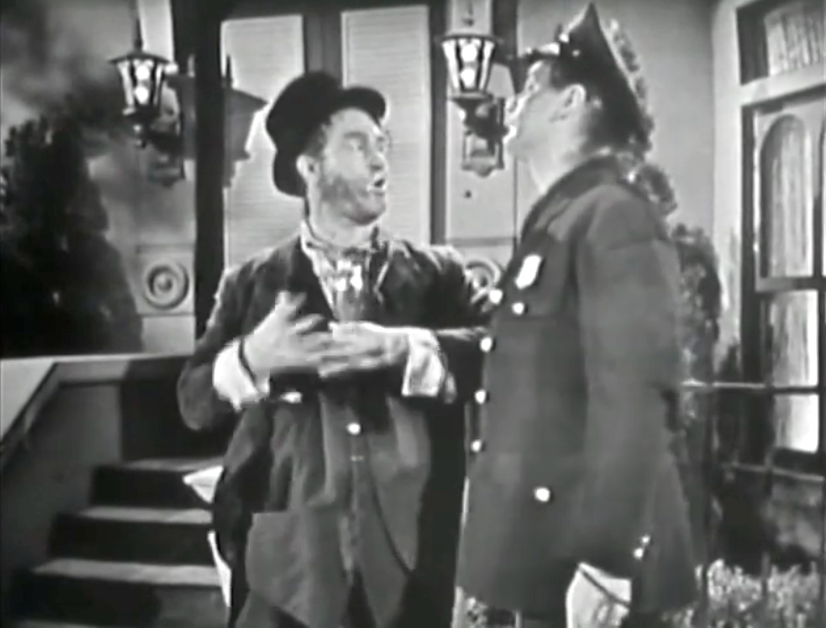 In the main sketch, Freddie the Freeloader is given a “friendly” warning by police officer Ray Kellogg, to not get in any trouble in this rich neighborhood. There’s a fancy masquerade party at a mansion, and Freddie decides to go inside, and “masquerade” as a hobo. After all, he’s dressed for it!