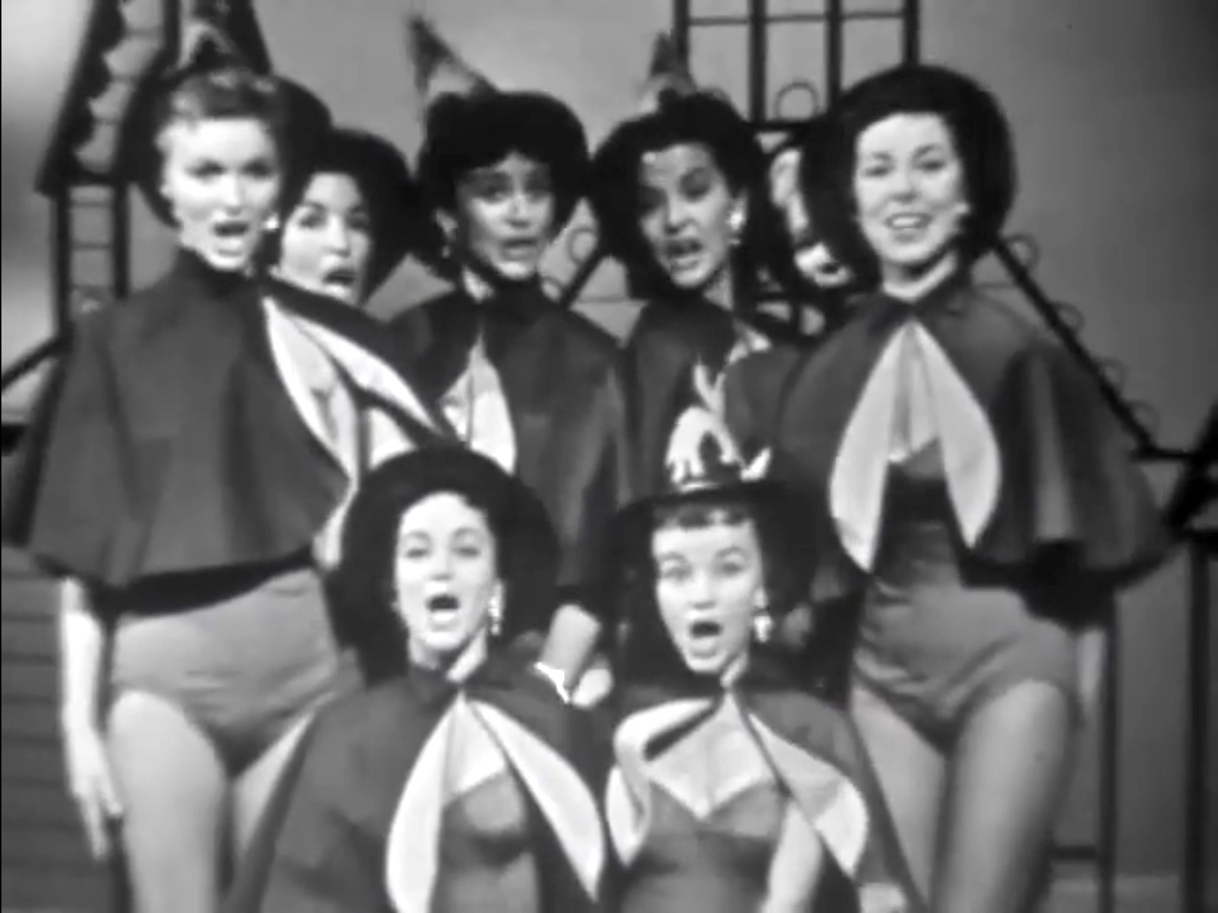 Halloween Show begins with a dance number, with eight cute witches (The Redettes). They sing and dance a short number about the special Halloween Show. Other than the Halloween topic, it’s not really related to the rest of the show. It ends with a pun about the “Red Skeleton Show, ghost-to-ghost”.