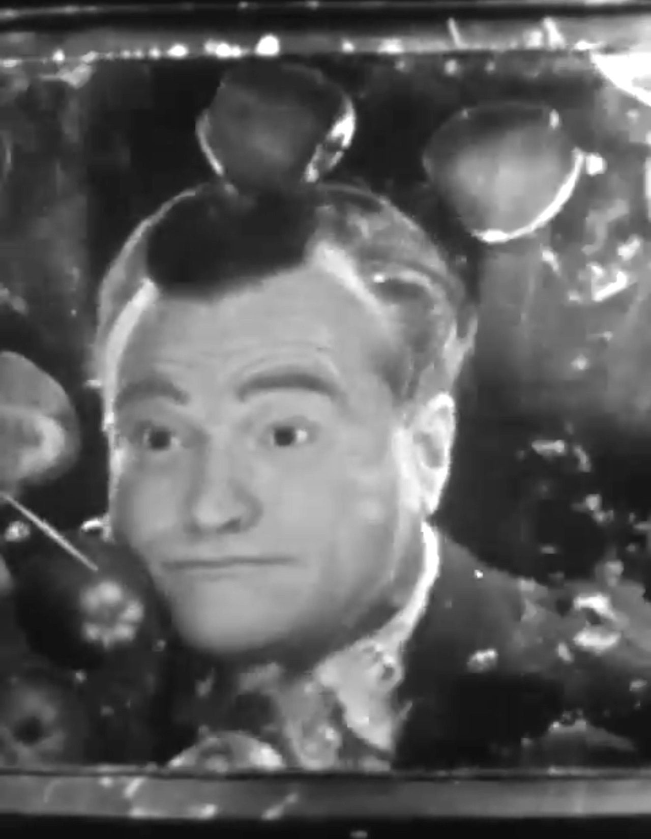 Red then demonstrates how different people bob for apples, after three lovely young ladies push a table, with apple bobbing tank with a glass bottom, so the audience can see Red’s face. “CBS: the only place where peaches bring out apples.”