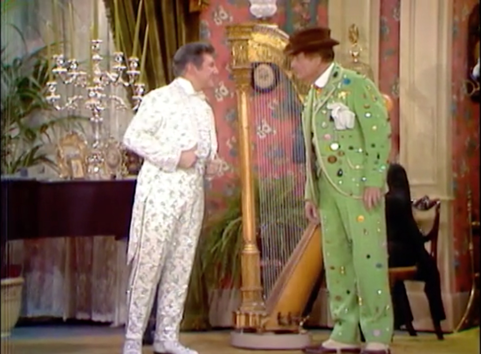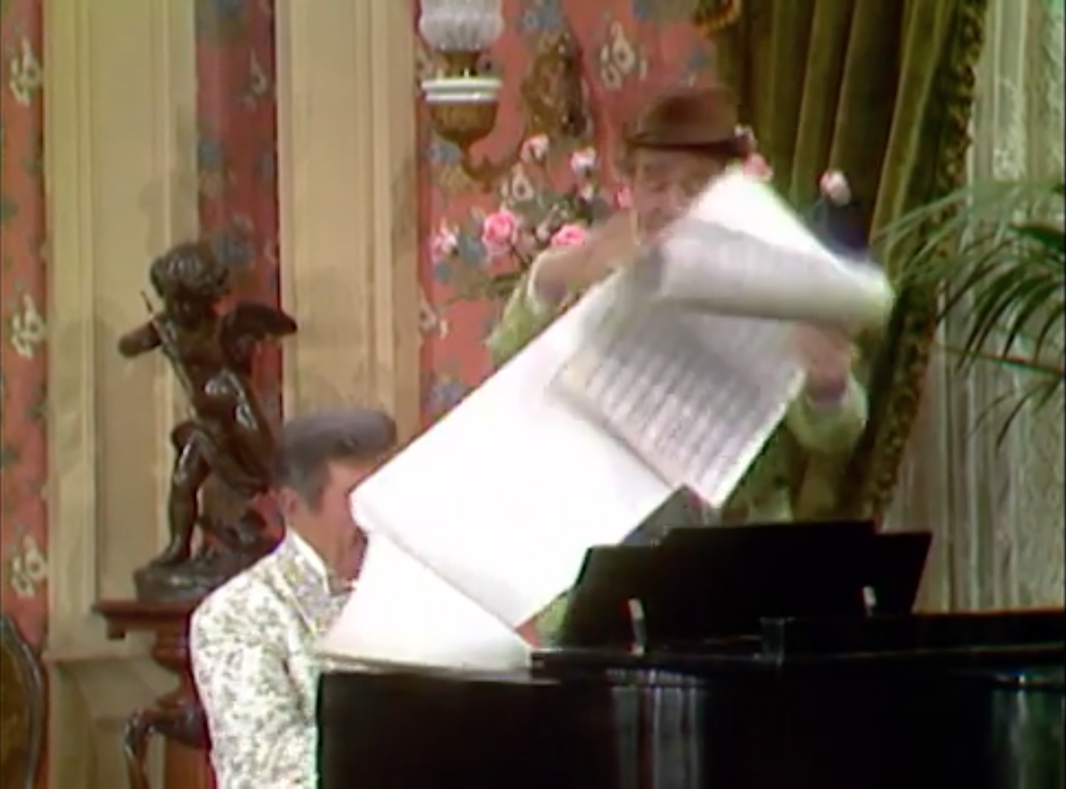 At Mrs. Abercrombie’s party, Liberace arrives in his glittery best. As does Clem! And after Clem drags a poor harpist through his harp, and irritates the music critic, they’re ready to perform!