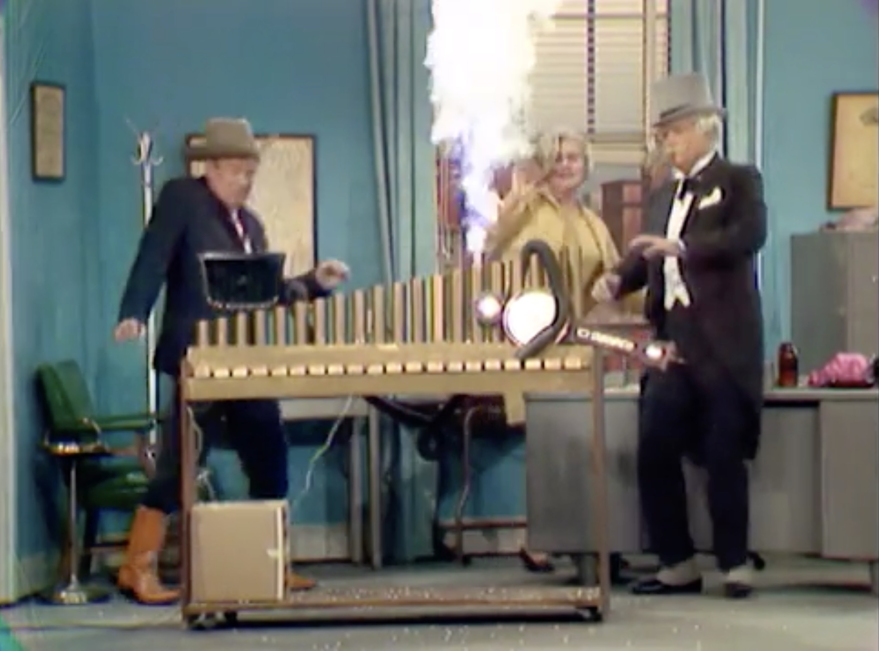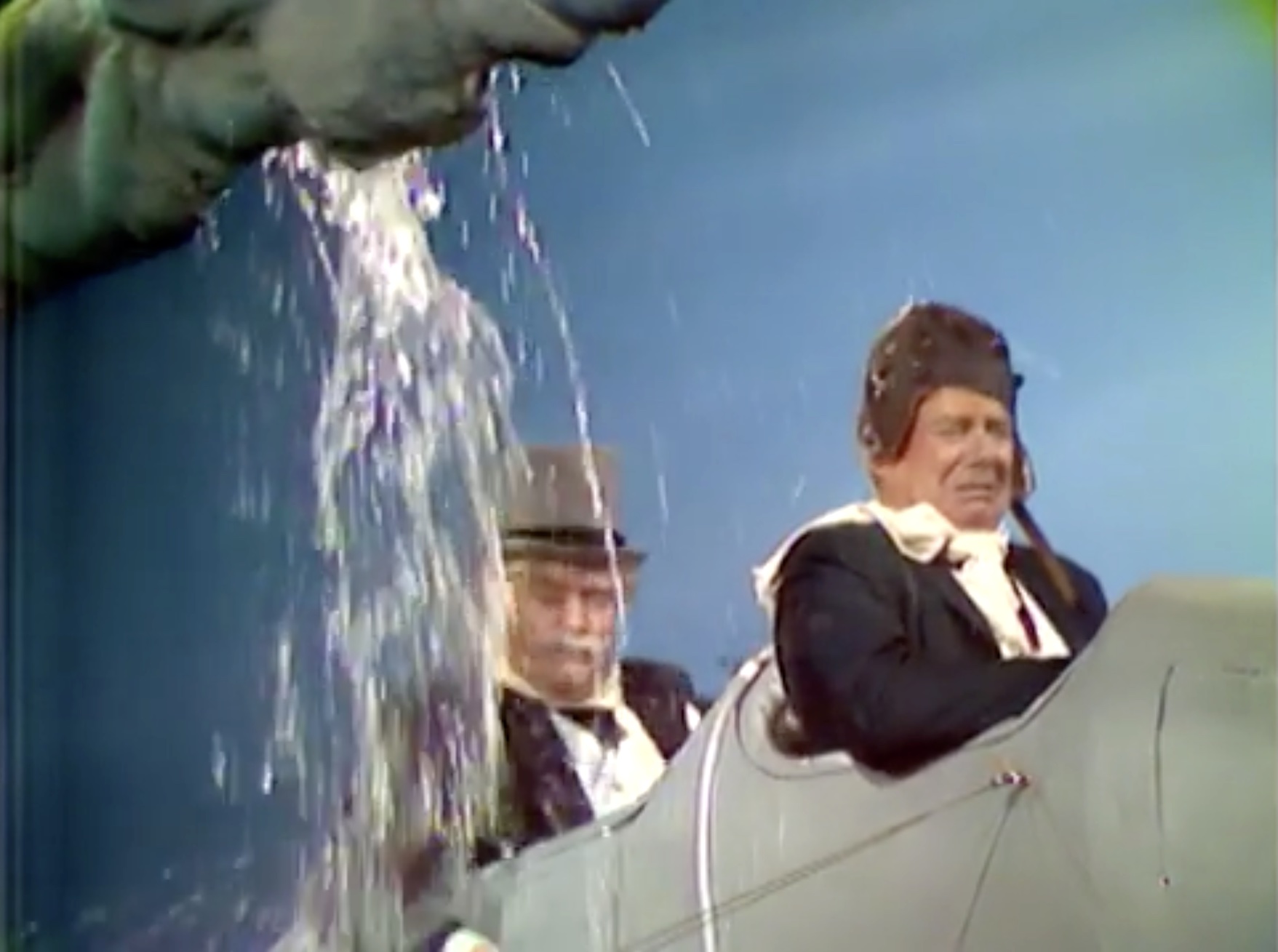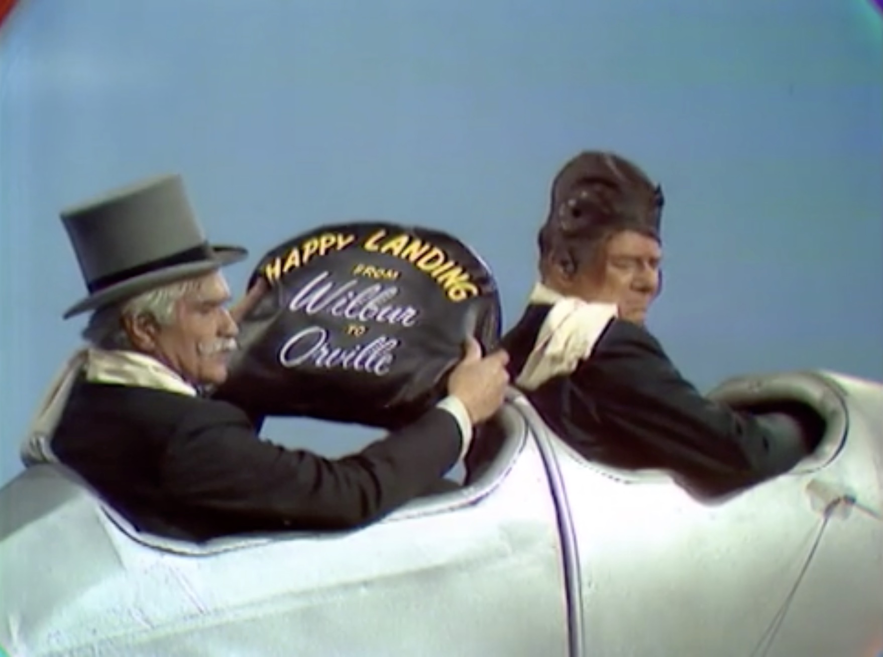 But, it’s a very old airplane! And there’s some prop comedy, ending with them losing the plane’s tail and wing! Down they go, ending the sketch.