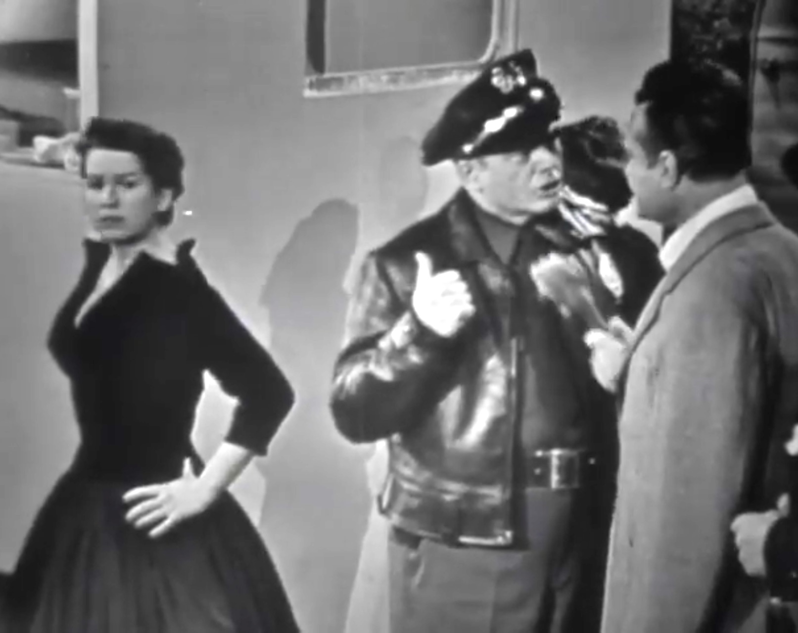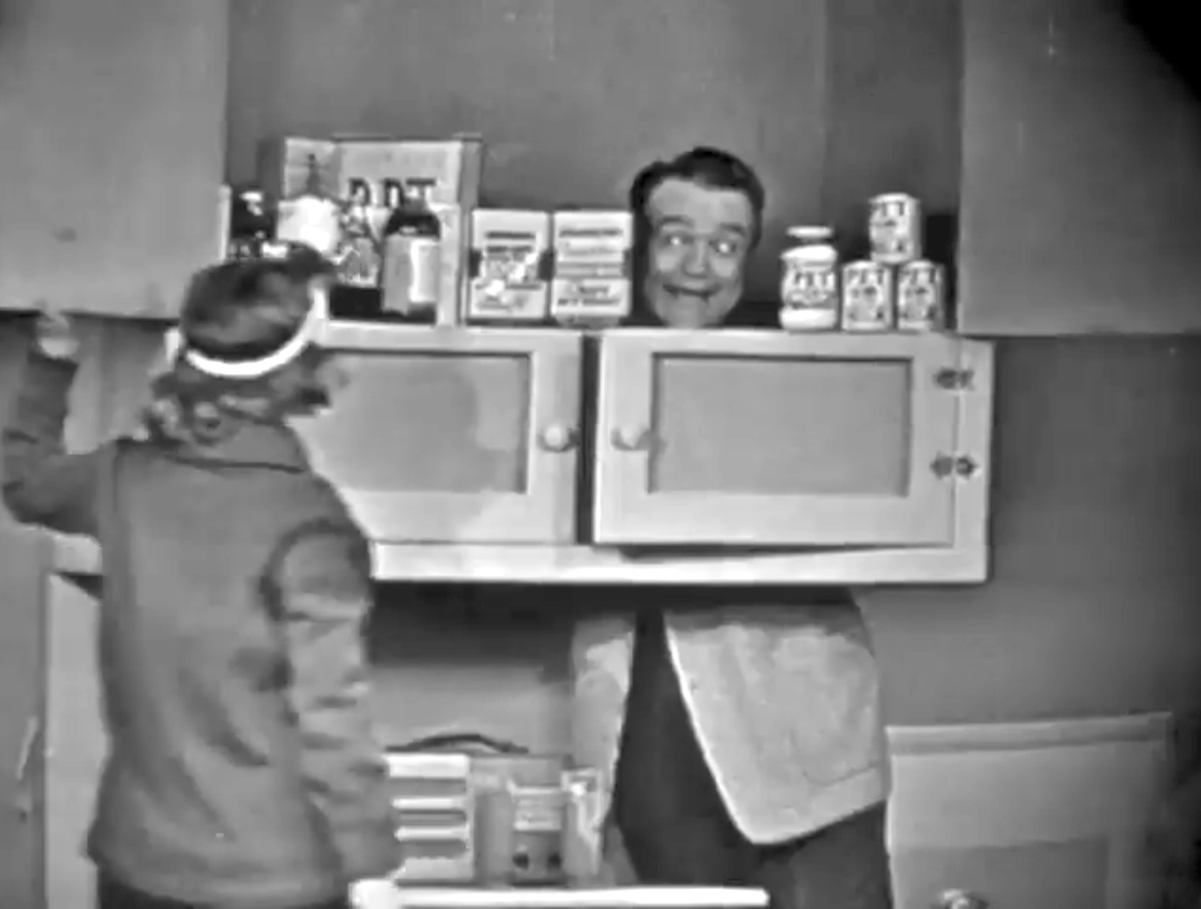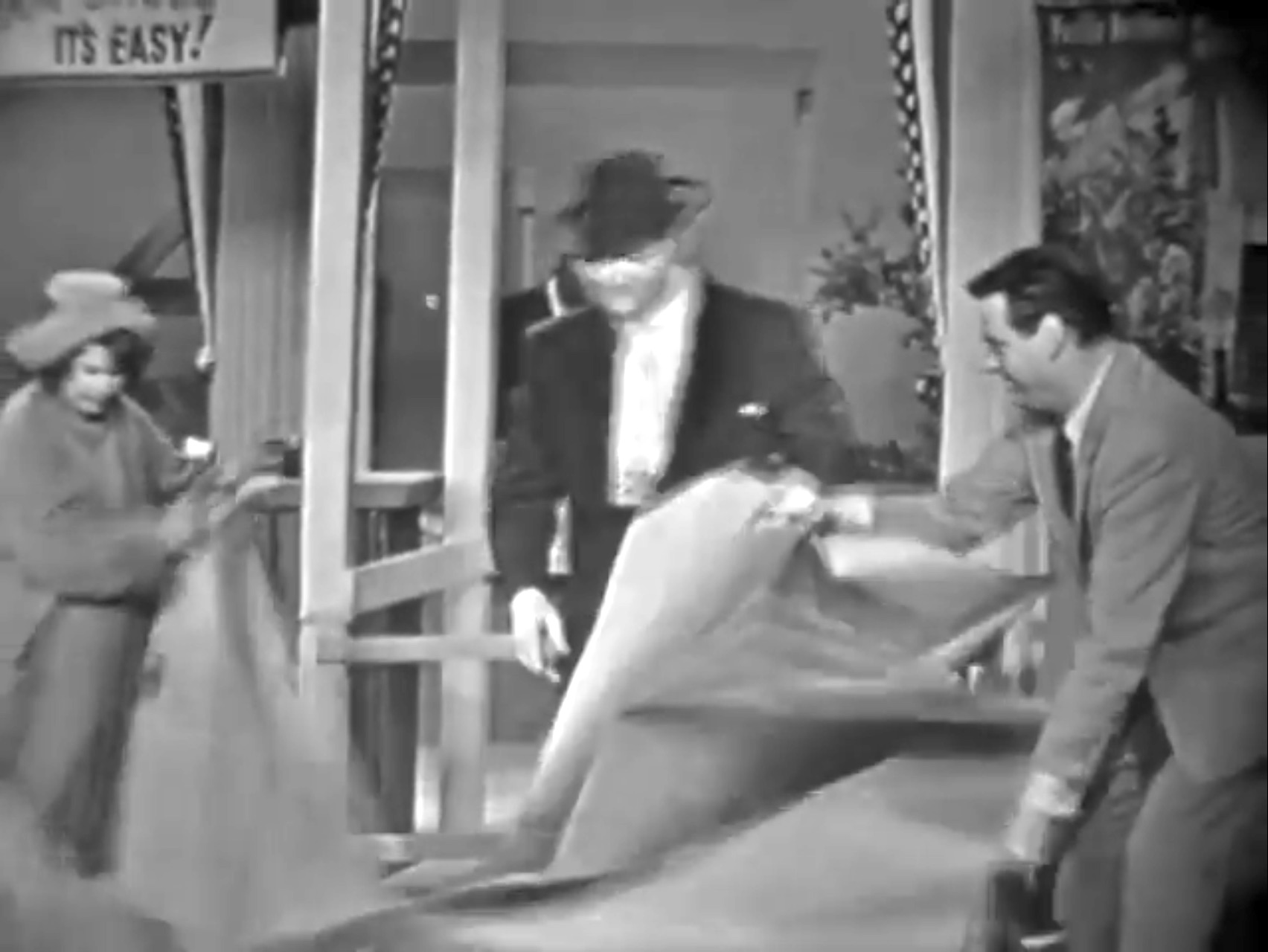 At Sadie Murphy’s trailer park, Red Skelton is putting the finishing touches on his new trailer. With a little bit of clown slapstick from Mary McCarty, of course. It’s a bit of a topsy-turvy house, where turning on the radio starts the sink spewing water … To actually play music on the radio? Put bread in the toaster, of course!