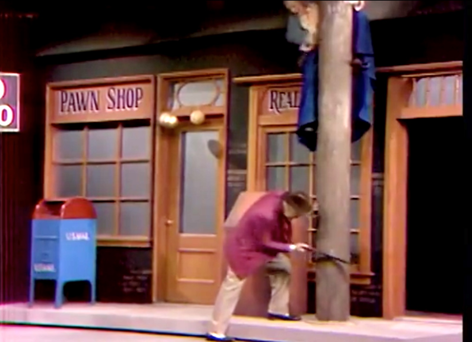 In the Silent Spot, Red pantomimes his elderly Pops character as an old photographer. He’s behind on his rent, so she comes into his shop to look for him. It’s a funny scene, as Pops is hiding under a table. The table slowly moves toward the door, and when the landlady tries to lean on where the table was, she falls down! Eventually she catches him, and makes him pawn his camera. But then, a customer comes in!