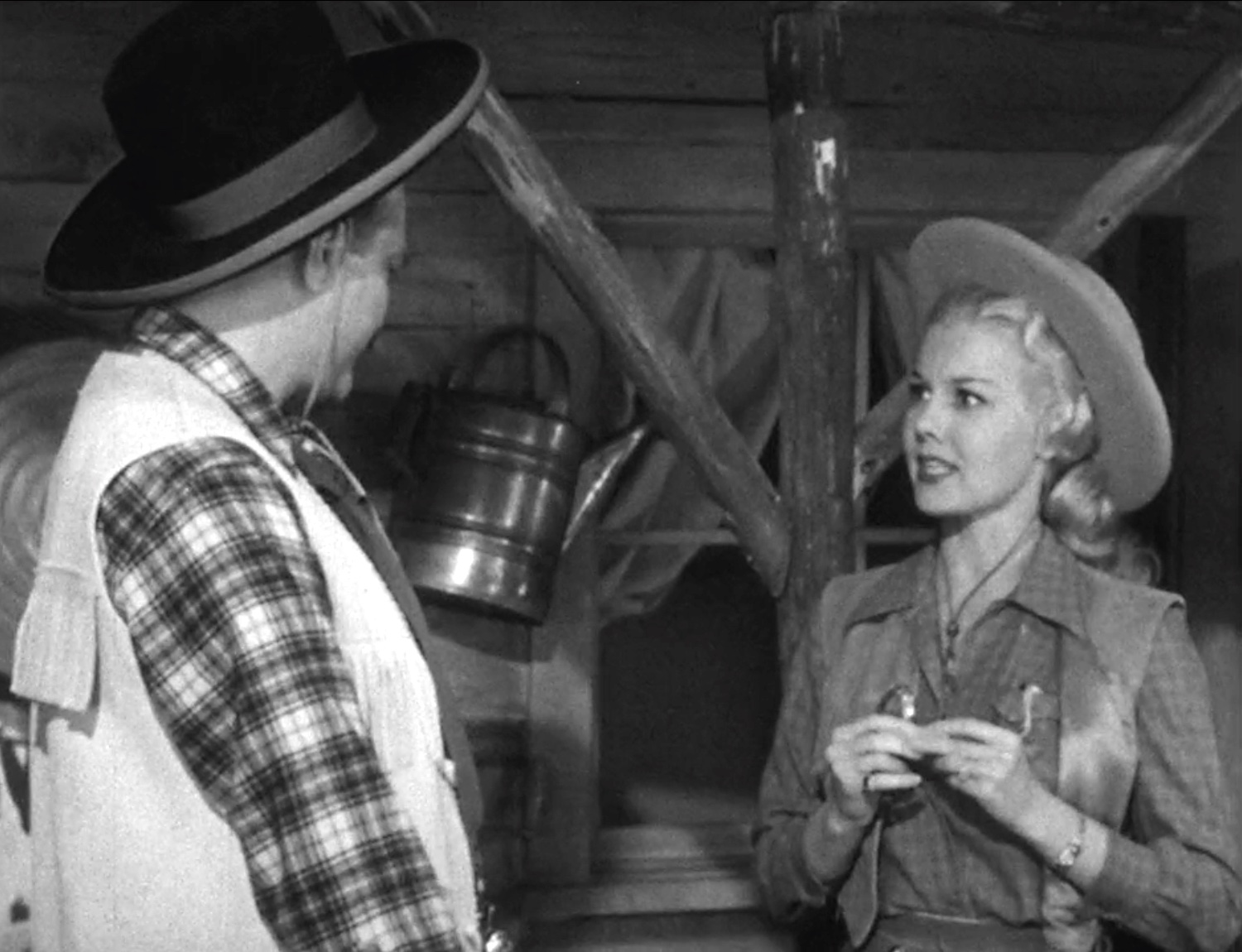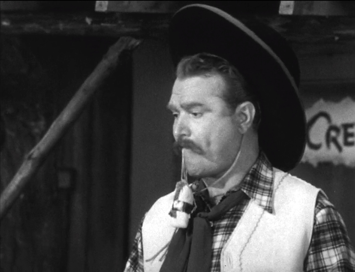 The first Skelton Scrapbook skit is “Texas Deadeye”. Cowgirl Lucy Knoch tries to teach Deadeye how a “real” Texan would roll his own cigarette. She even borrows him a tobacco pouch and some cigarette papers — what a nice lady. But then, Deadeye demonstrates that it’s not as easy as it looks! A very funny routine.