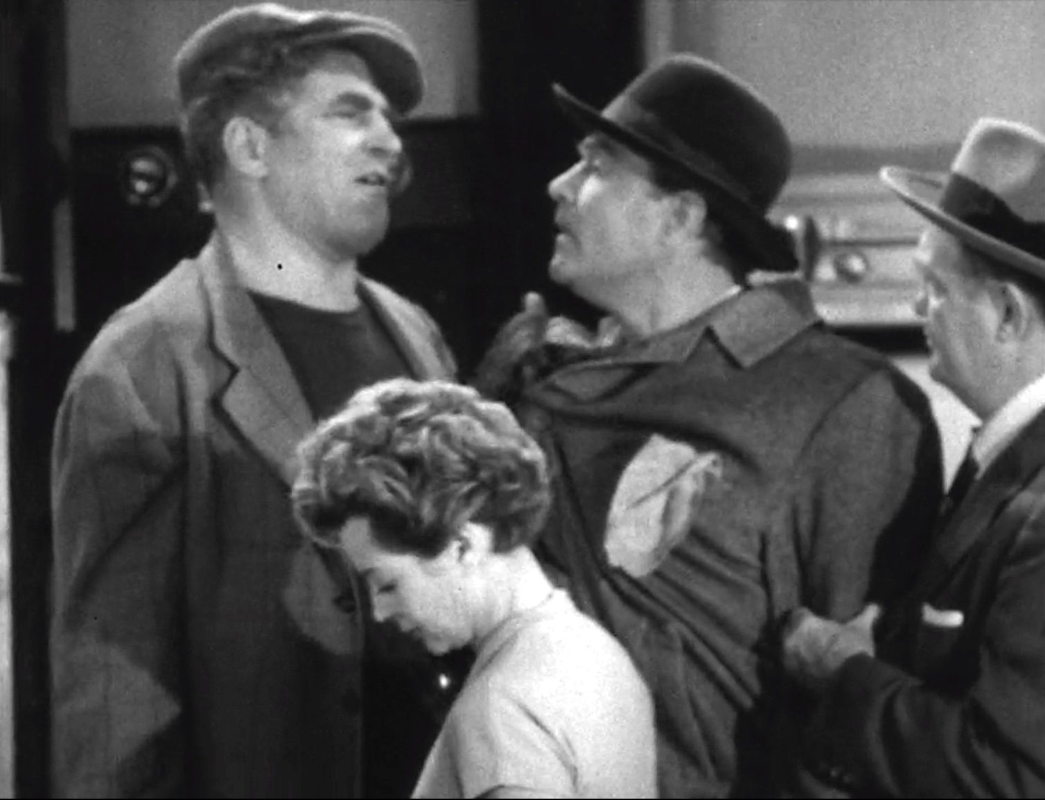 Red does a short sketch at a magazine rack, where he buys a newspaper. But then he finds out it’s yesterday’s newspaper! So he’s shaking the machine upside down — and a police officer comes by!