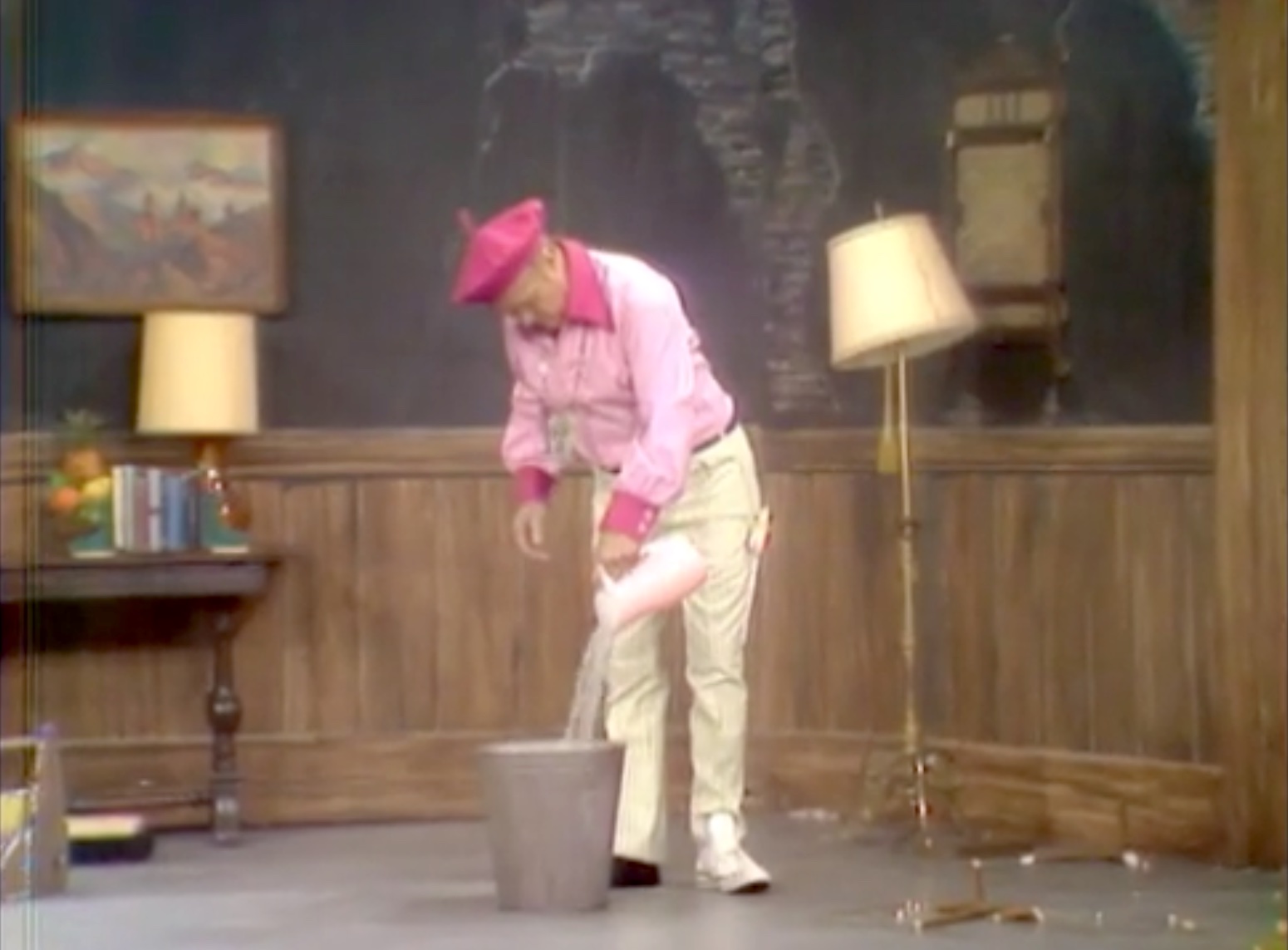 Incompetent, flamboyant handyman Red is hired by a Realtor (Ida Mae MacKenzie) to repair a house before it is put up for sale. It’s a funny bit, as he throws tacks outside the window — ending up in Ida Mae’s car tire! Accidentally sets his shoe on fire, “varnishes” a table top, and finally washes the walls — ending up a dancing with the soap bubbles routine! Ida Mae’s had enough, so she fires him! But Red has his revenge, and releases his termites on the house! Very, very hungry termites!
