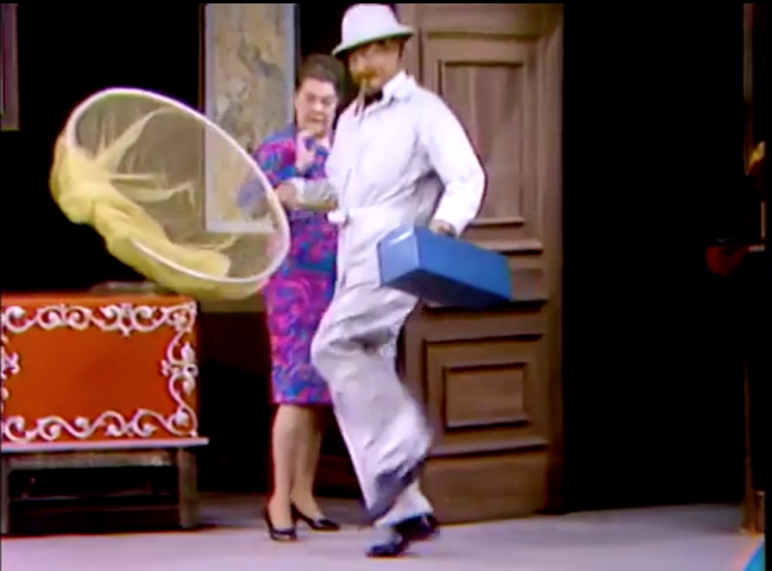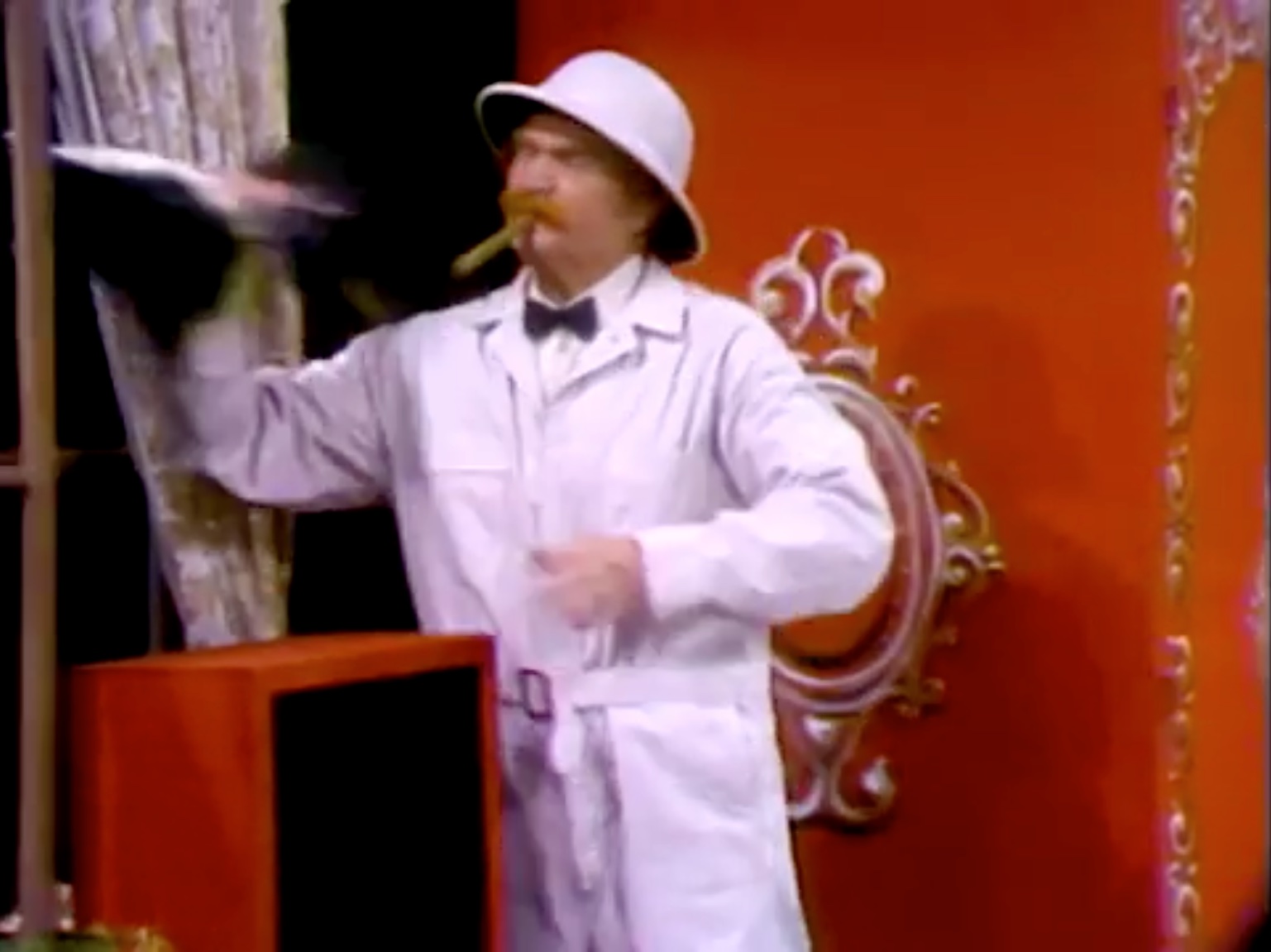 In the Silent Spot, Red is an exterminator, called to a home to get rid of an annoying cricket in the wall. However, it’s a magician’s home, and Red gets in trouble with virtually every magic prop! A very funny skit.