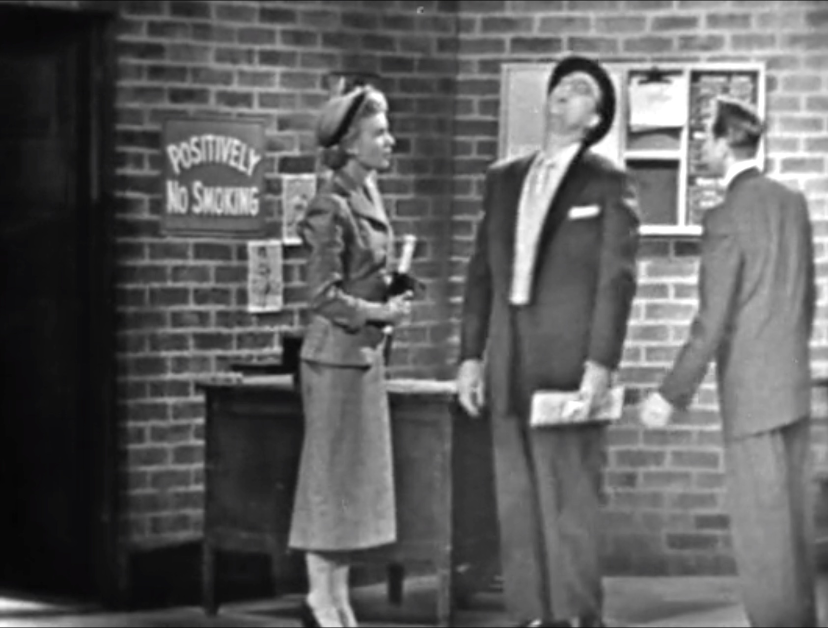 Red opens the program with a demonstration of different people at a movie theater, such as a man running for the streetcar to get to the theater, the overly-grinning ticket taker, the usher, a movie-goer trying to find a seat in the middle of the row, and a man who can’t see the screen because the lady in front of him has a high hat.